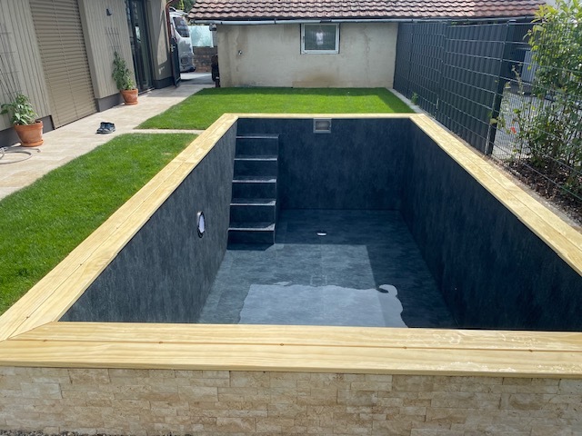 Beim Poolbau setzen wir Schwimmbadfolien ein, die nach unseren